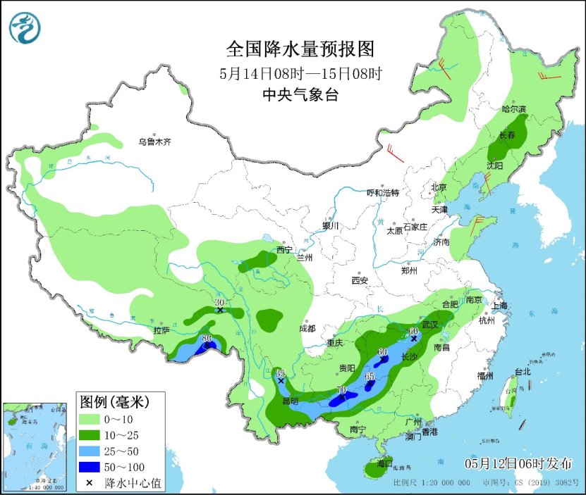 在降水方面,预计今天,全国大部地区仍降水较弱,仅西藏东部、四川北部、云南西部、陕西南部等地部分地区有中雨,局地大雨。明日起,南方地区雨水将增多,西南地区东部、江南中南部、华南中北部等地降水将呈现面弱点强、影响范围广等特点。此外,13日,内蒙古中东部、华北北部、东北地区有雷雨天气过程,局地风雹强对流