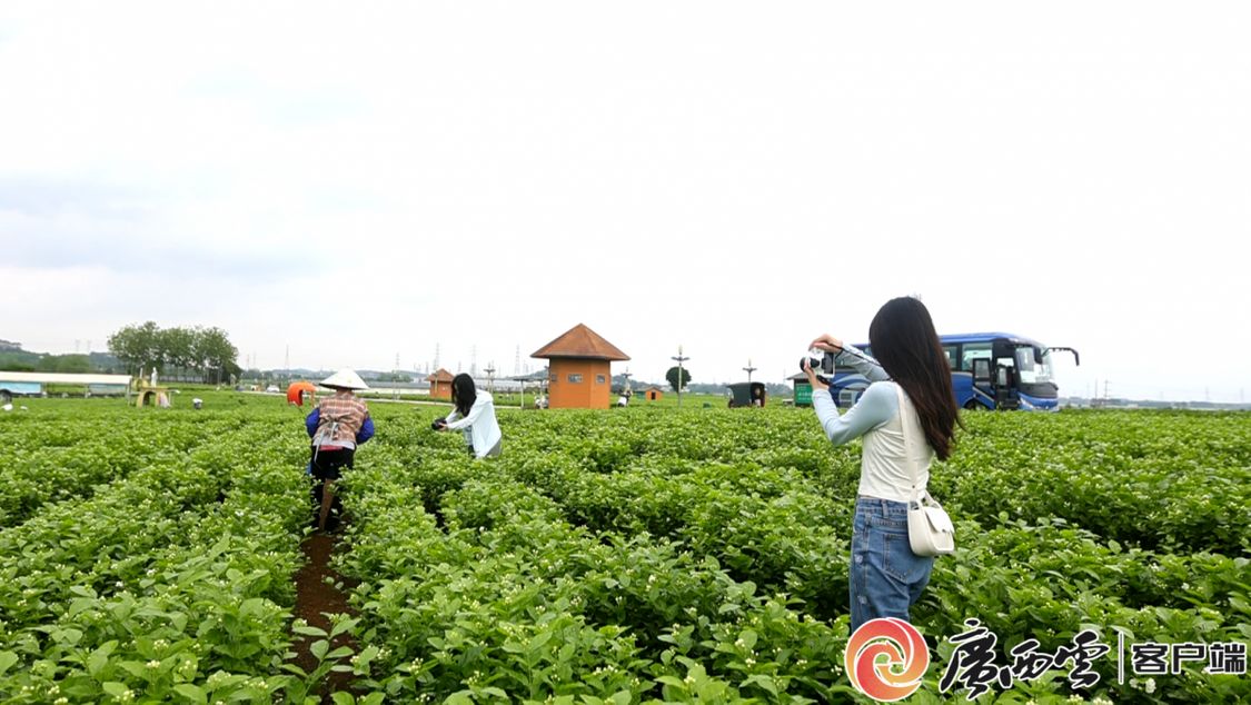 采风团在横州市校椅镇石井村中华茉莉园参观采访。记者 黄勇椋 摄