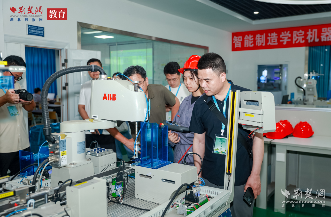 智能时代,数字育人。6月24日下午,2025全国主流融媒湖北高校行走进学校智能制造学院,来自全国30余家主流媒体记者通过实地探访发现:该院以培养智能制造领域需要的高素质技术技能人才为己任,在个性化培养、技术技能“英才”培养方面形成鲜明特色。