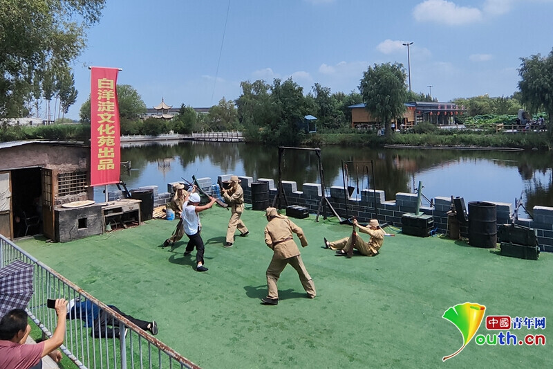 在白洋淀文化苑演出的抗日实景剧。中国青年网记者李华锡摄