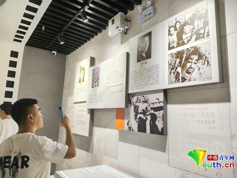 媒体记者在拍摄《小兵张嘎》故事介绍。中国青年网记者李华锡摄