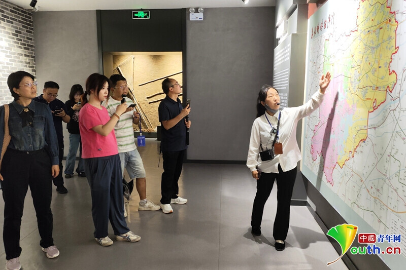 白洋淀雁翎队纪念馆讲解员宋娜(右一)在进行讲解。中国青年网记者李华锡摄