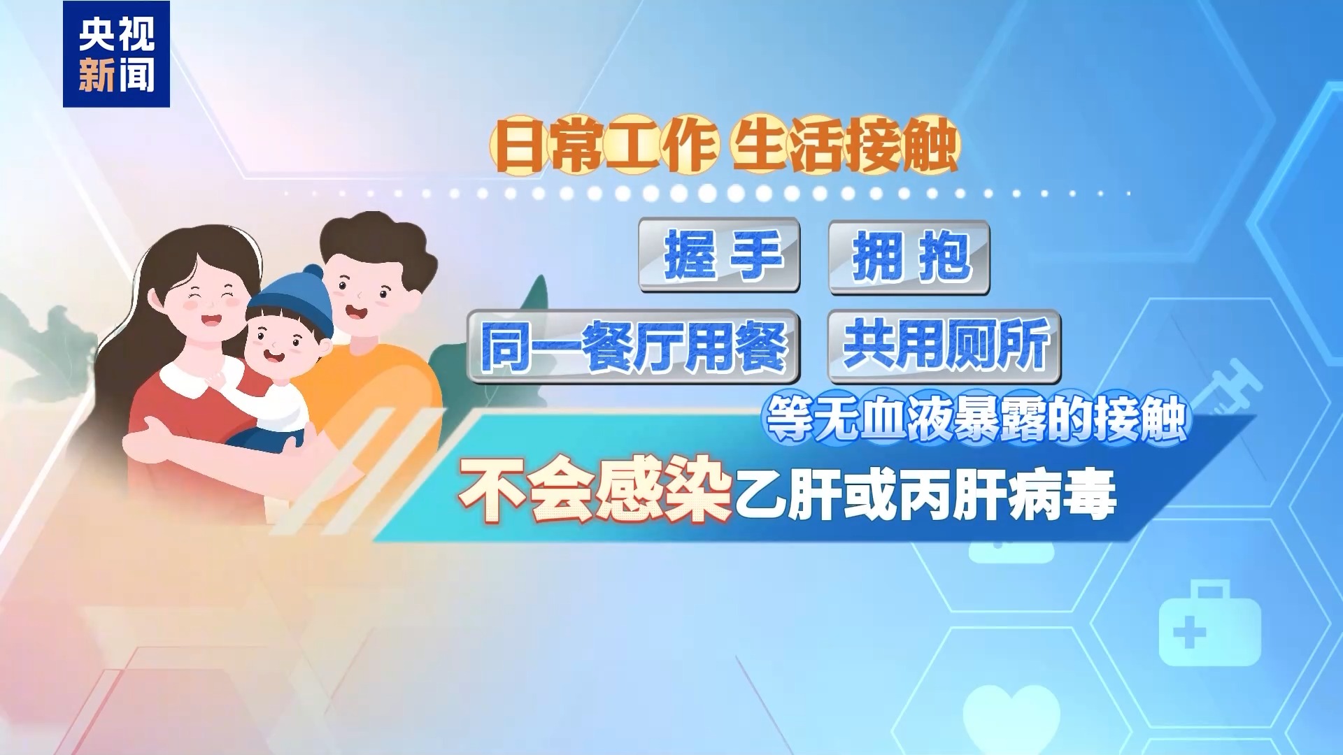 日常工作、生活接触,比如握手、拥抱、在同一餐厅用餐和共用厕所等无血液暴露的接触,不会感染乙肝或丙肝病毒。