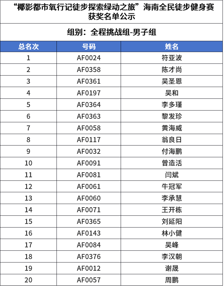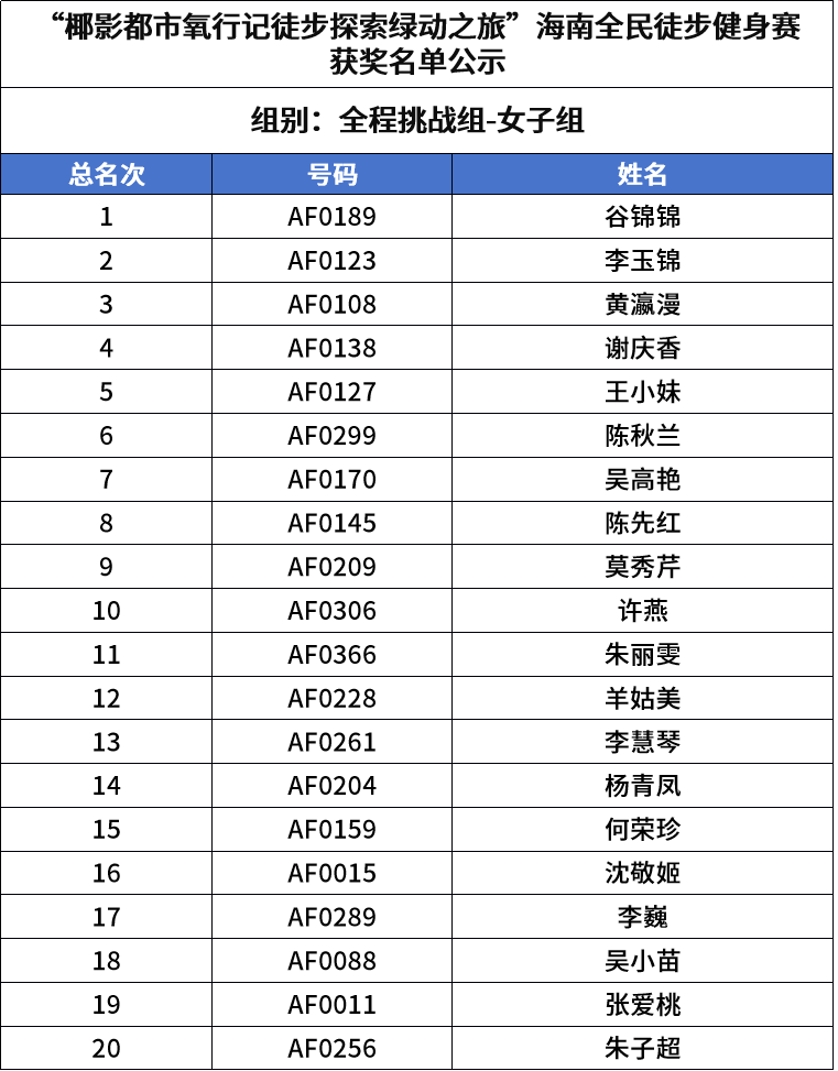 根据竞赛规程,现对本次赛事全程挑战组男子组、女子组前20名获奖成绩进行公示如下,公示期为10个工作日(2025年8月24日至9月5日)。公示期内运动员如对比赛成绩有异议,请联系赛事组委会(赛事组委会官方邮箱:nanhainanguo@163.com)并提供真实有效的证据。若经调查取证确认被举报者存在违反竞赛规则的事实,则取消其录取名次,空出的名次不再递补。