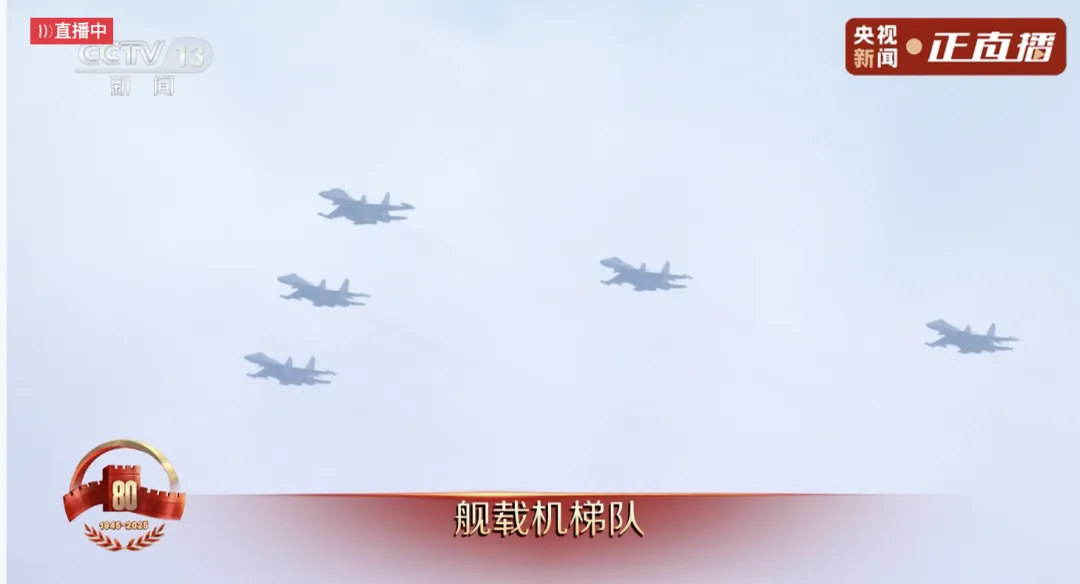 由歼-15DH、歼-15DT、歼-35和歼-15T四型战机组成的舰载机梯队,3日上午接受检阅。