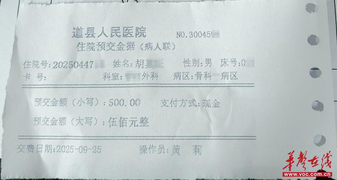 华声在线9月25日讯(通讯员 柏华林 赵华)9月25日上午,道县人民医院脊柱外科(骨一区)的一条“特殊缴费记录”引发全院关注:68岁患者胡某术前家属执意赠送的500元“感谢红包”,经麻醉科副主任医师唐玲超之手,化作了患者的住院预交金。