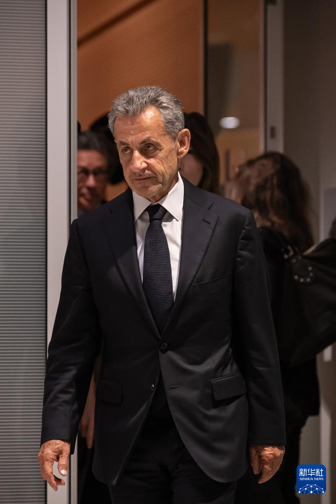 9月25日,在法国巴黎,法国前总统萨科齐在庭审后离开。新华社发(奥雷利安·莫里萨尔摄)