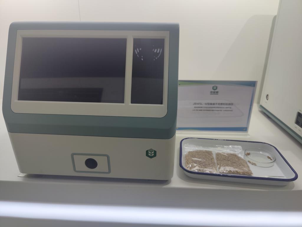 这是10月15日在中储粮成都储藏院内拍摄的JBWSL—M型粮食不完善粒检测仪。新华网 李然 摄