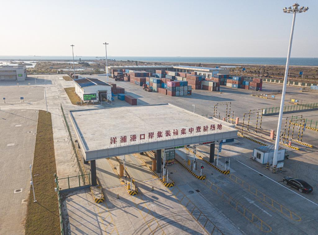 2025年1月12日在海南洋浦经济开发区拍摄的洋浦港封关运作项目智能卡口(无人机照片)。新华社记者 蒲晓旭 摄