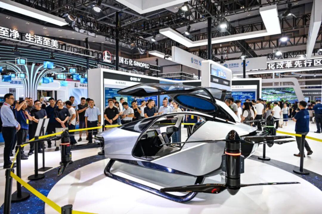 观众在世界智能产业博览会上参观电动垂直起降飞行器。 新华社记者 王全超摄