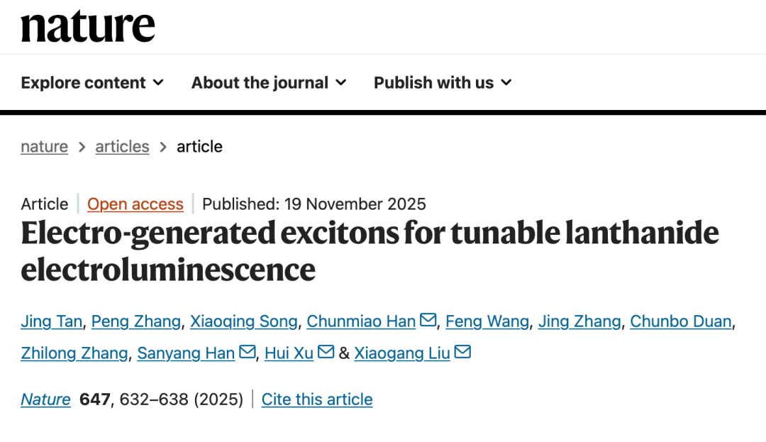 “捕获电生激子实现可调谐的稀土纳米晶电致发光”