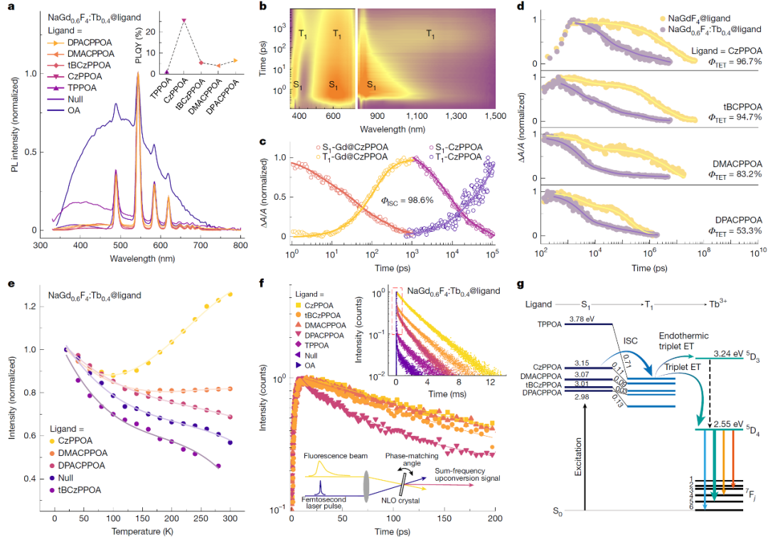 2020年,韩三阳以第一作者身份发表《自然》文章,展示团队研究成果:利用镧系纳米晶与界面分子进行结合,可实现三线态激子的自旋调控以及快速将激子能量注入稀土纳米颗粒。