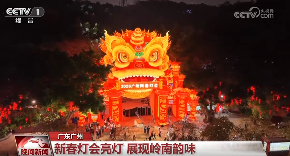 近日,2026广州新春灯会在越秀公园亮灯。灯会以高达20米的“雄狮醒阙”光影门楼震撼开场。园内,光影长卷展现了广州的地理文脉,11米高的“大吉大利”灯组融入了“行花街”的年俗趣味。北秀湖上,百米长的“万马奔腾”灯组气势恢宏。85组璀璨灯组如星河倾泻,为市民游客开启一场充满岭南韵味的新春盛宴。