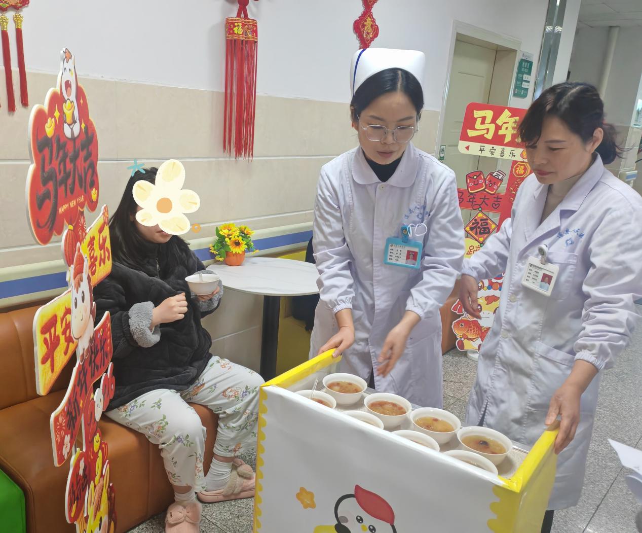产科:除夕当天,产科举行送银耳羹传新年祝福活动,让每一位产妇在医院都能感受到在家的温暖。(刘红香 摄)