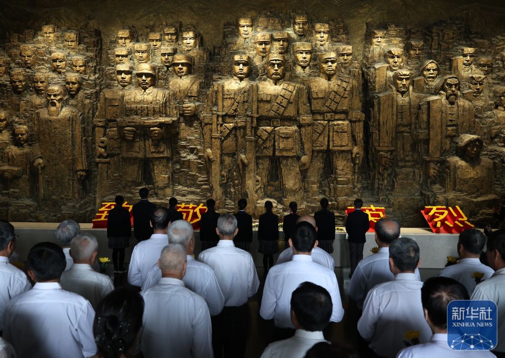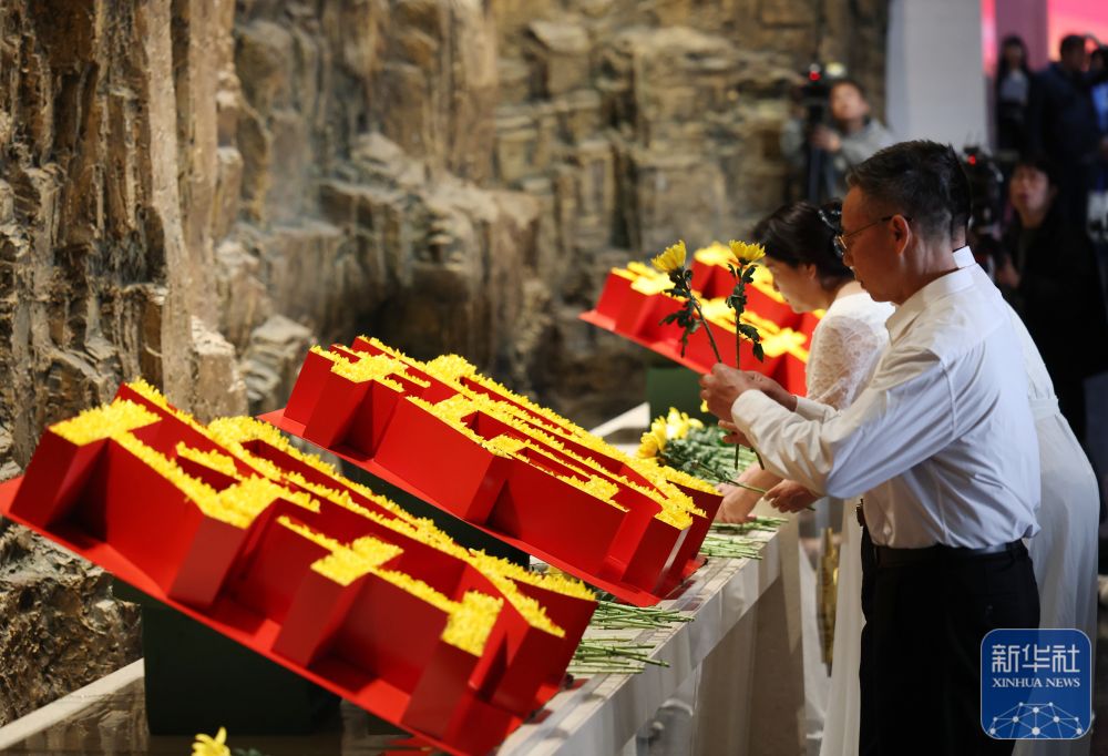 4月3日,参加活动的社会各界代表在中国人民抗日战争纪念馆向抗战英烈献花。